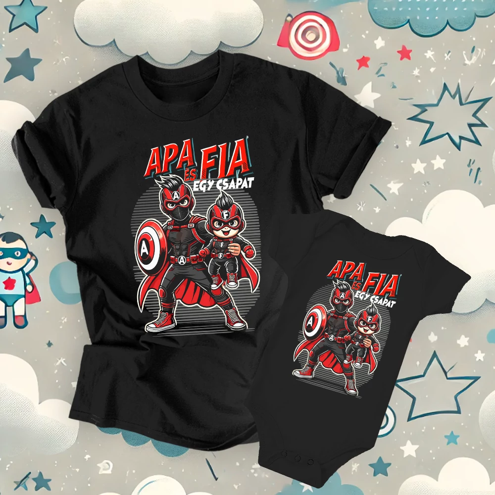 Nincs is menőbb, mint amikor apa és a kis hőse összeöltöznek! Ez a "Apa és Fia - Egy Csapat" egyenszett ideális választás minden olyan pillanatra, amikor szeretnétek megmutatni az apa-fiú kapcsolat különleges kötelékét. Tökéletes egy közös fotózáshoz, családi eseményekhez, vagy akár egy lazulós naphoz otthon. A kényelmes, puha anyag és a vagány szuperhős dizájn garantáltan feldobja a napot mindkettőtök számára. Válaszd ezt a szettet, és legyetek ti is a legstílusosabb szupercsapat!