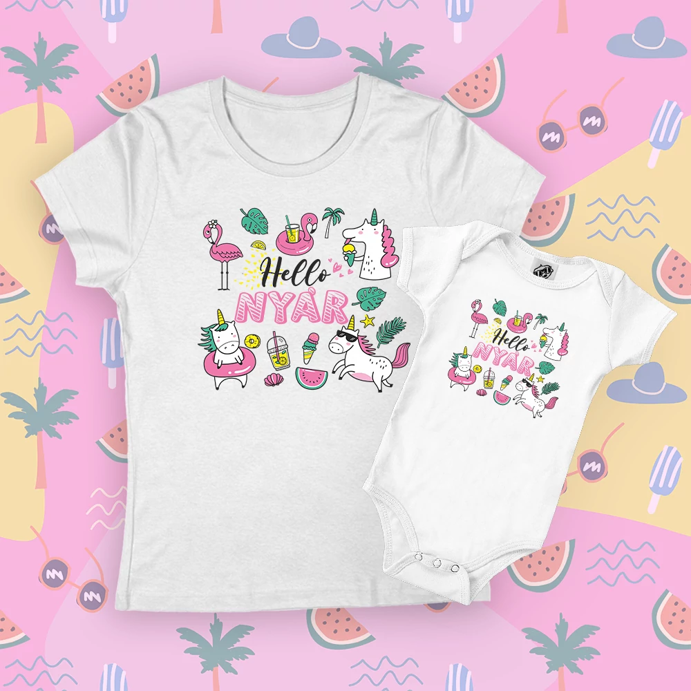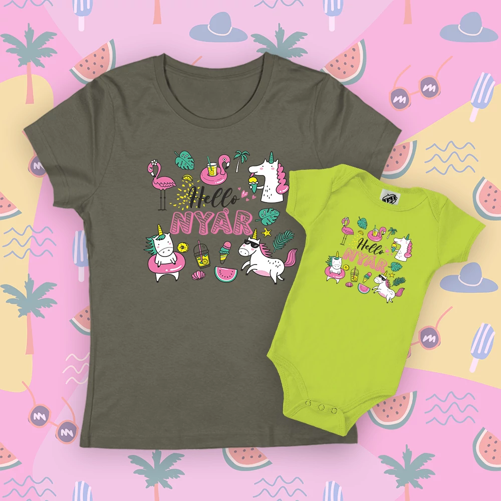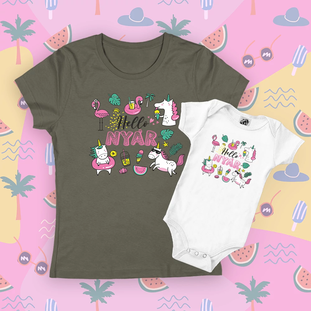 A csomag tartalma 1 db babaruha és 1 db női póló