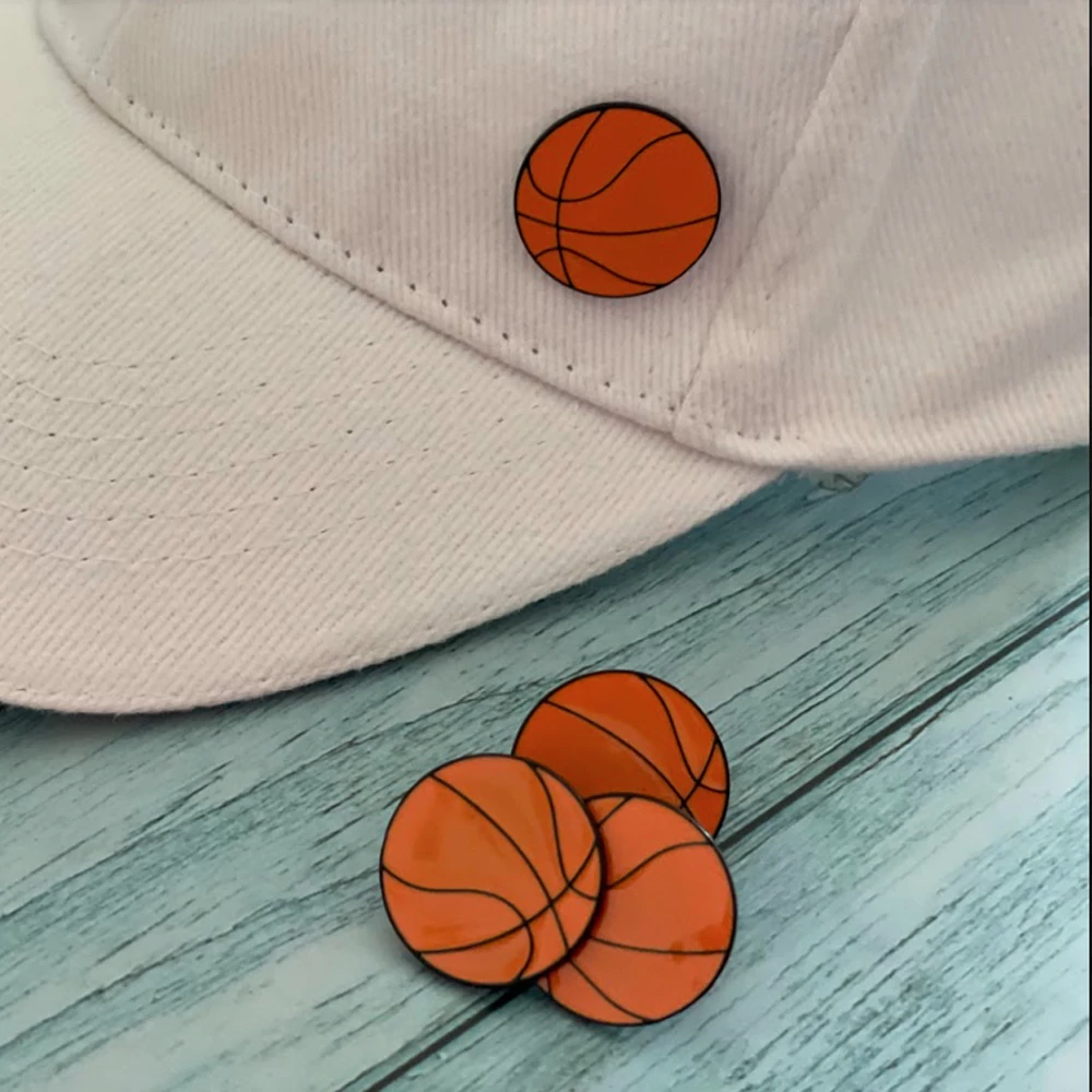 Színes és vidám fém kitűző - Kosárlabda - mintával.