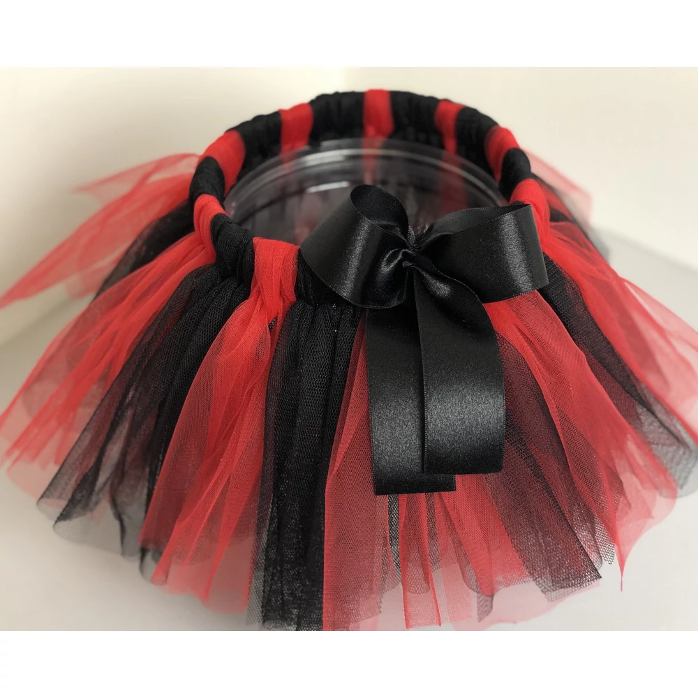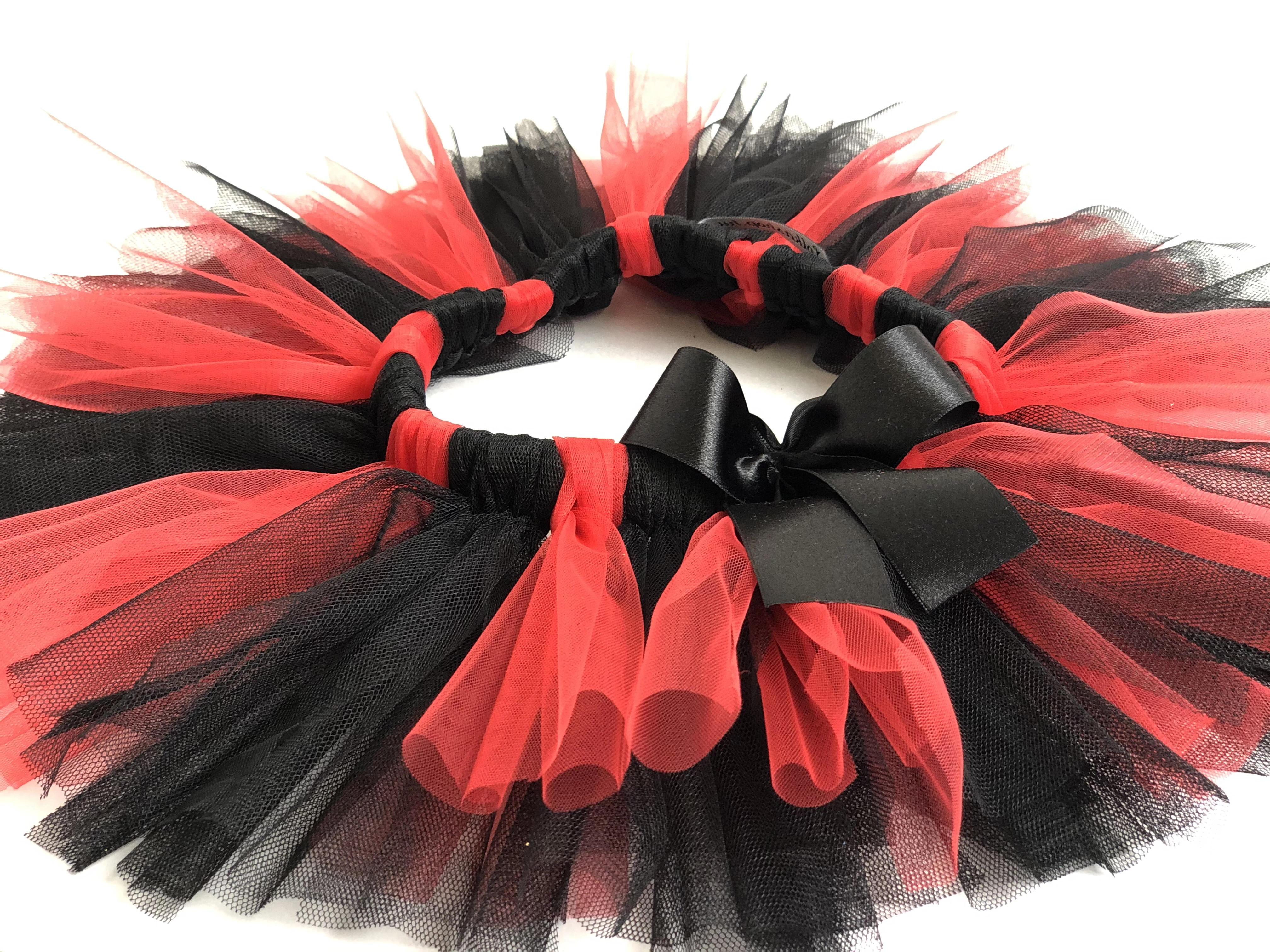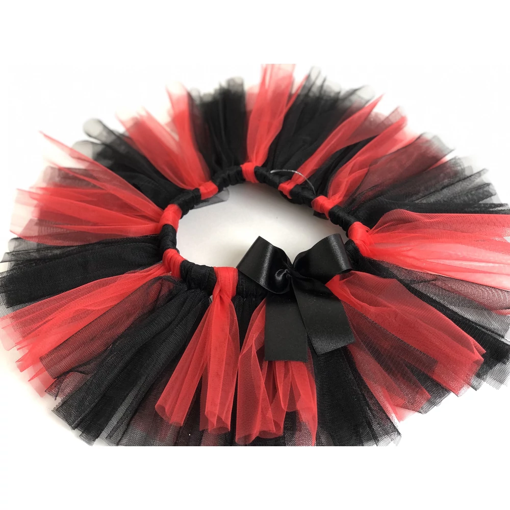 Krampusz tüllszoknya lágy tüllből, fekete-piros színben, fekete masnival.