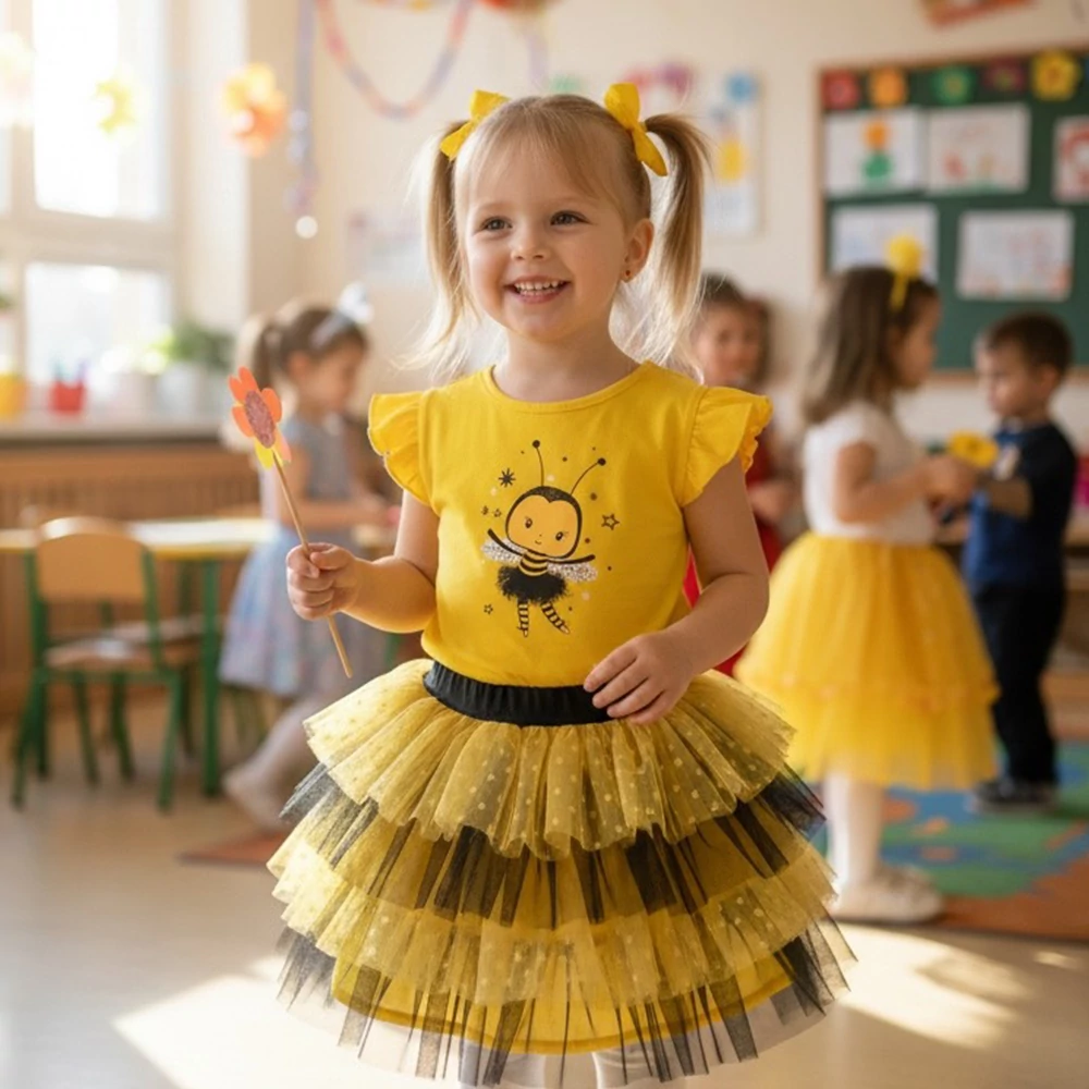 • Vidám és egyedi design – Az aranyos méhecske minta és a tüllszoknya tökéletes kombinációja egy különleges ruhának
