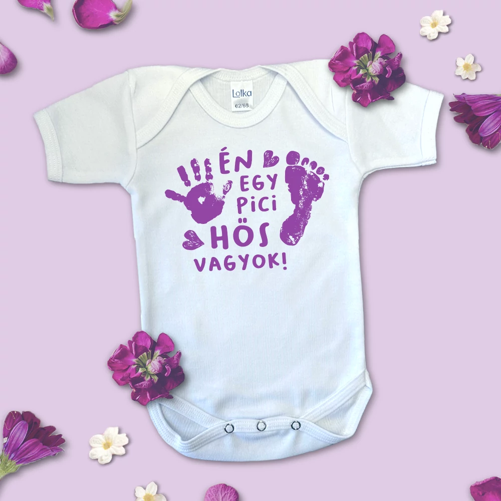 Ez a különleges babaruha az apró hősök számára készült, akik már életük első napjaiban megmutatták, milyen erősek. A „Én egy pici hős vagyok” felirat büszkén hirdeti a korababák különleges helyét a világban. Kisebb méretekben is kapható. 100% pamut anyagból készült, amely maximális kényelmet nyújt a legkisebbek számára is. Tökéletes ajándék minden hősies kisbaba számára!