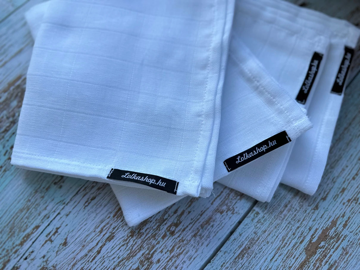 80x80 cm nagyságú, finom, puha, pamut flanel anyag, egyszínű fehér.