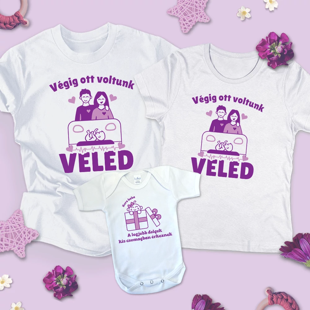 Ez a megható “Végig ott voltunk VELED” családi szett kifejezetten a koraszülött babák és szüleik számára készült, akik egy különleges úton indultak el együtt. Az anya - apa - baba szett a szülők jelenlétét és támogatását jelképezik, megemlékezve arról az időszakról, amikor minden pillanat számított. A szett részei a szülők számára készült pólók, melyeken az „Végig ott voltunk VELED” üzenet látható, valamint egy kis body, amelyen a következő kedves szöveg szerepel: "A legjobb dolgok kis csomagban érkeznek." Tökéletes ajándék lehet olyan családoknak, akik korábban érkező csodával gazdagodtak.